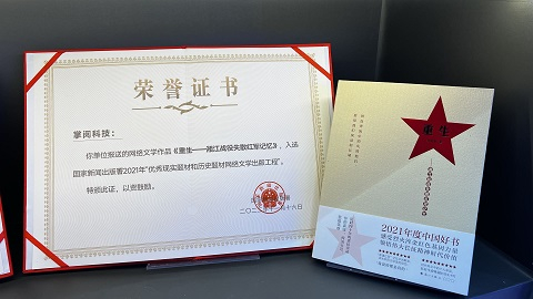 日前,掌阅科技旗下网络文学作品《重生:湘江战役失散红军记忆》在第六届中国“网络文学+”大会上入选“优秀网络文学作品”提名。此外,该书还作为优秀作品代表,亮相网络文学新时代十年主题成果展,通过有声、图文、实物等形式,结合互动展项,呈现出网络文学积极投身新时代伟大实践的丰硕成果。