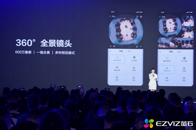 旗舰系列包括全景摄像机E4p、3D双目深度摄像机E5x、三目变焦摄像机E8x三款产品,均采用定制一体化设计,无论从颜值还是功能都称得上是匠心之作。全景摄像机E4p拥有一颗600万像素360°全景抗畸变镜头,一镜全景成像自然,支持鱼眼图、全景5分屏、柱状图等多种预览模式。其内置USB接口,支持UVC标准协议,全面兼容腾讯会议、Zoom、钉钉等常见会议软件,同时也支持萤石自有RTC服务,很好的满足了办公场景的需求。