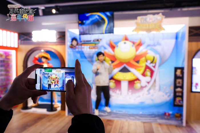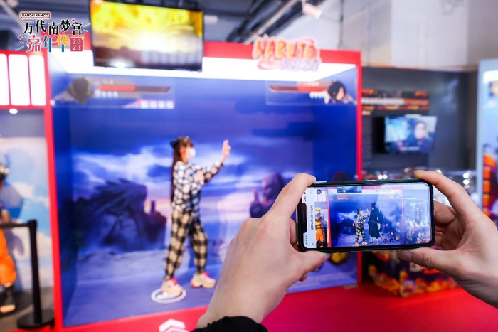 继续前行,观众便进入了各大知名IP的世界。在这里,除了观看商品展示,来场者还可体验《航海王:燃烧意志》、《数码宝贝:新世纪》,《火影忍者》手游AR,与游戏角色合影留念。