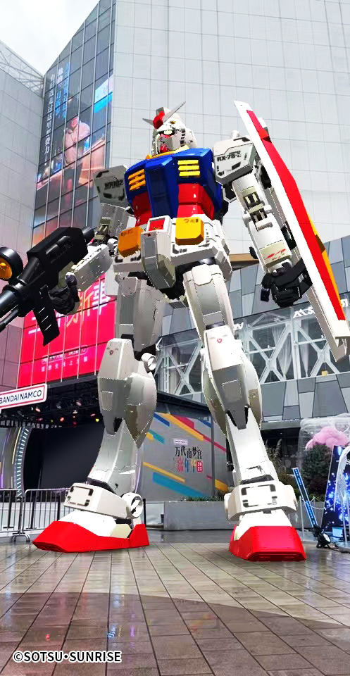此次嘉年华外广场不仅为观众展示了高达立像,活动还特地运用了AR技术视觉上呈现了高达的真实尺寸,来场者用手机扫描即可在现场感受高达的震撼效果。