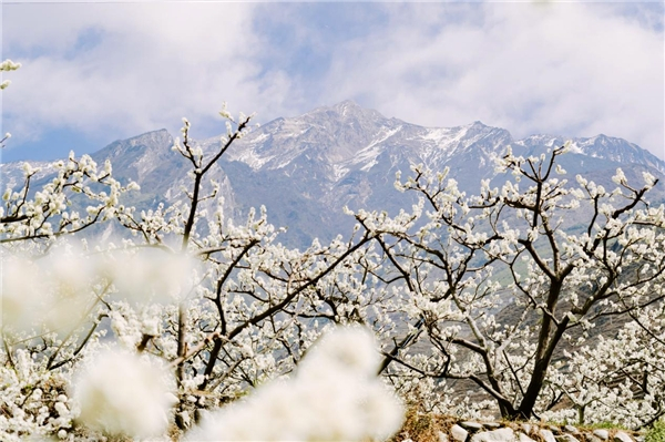 山野田间、羌寨院落,一簇簇洁白的李花缀满枝头,繁茂如雪,构成了唯美的茂县春日画卷。远望如皑皑白雪,近看似凝霜冰花,李花林与远处的雪山相得益彰。漫步其中,耳旁拂过阵阵春风,淡淡的花香萦绕鼻尖,目光所及处皆是素雅花海,瞬间将人带进“千片万瓣舞轻扬,暗香浮动如飞雪”的诗意境界,令人沉醉不已。细细碎碎,朦朦胧胧,这一树树雪白,编织出了专属于茂县的春天浪漫。