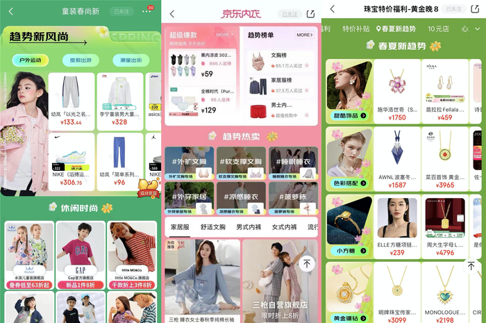 为满足消费者的精细化、个性化置装需求,京东服饰全面升级上线七大服饰品类馆,涵盖男装、女装、鞋靴、箱包、内衣、珠宝饰品、童装童鞋,为消费者打造商品更丰富、体验更流畅、价格更实惠的春季置装消费场景。