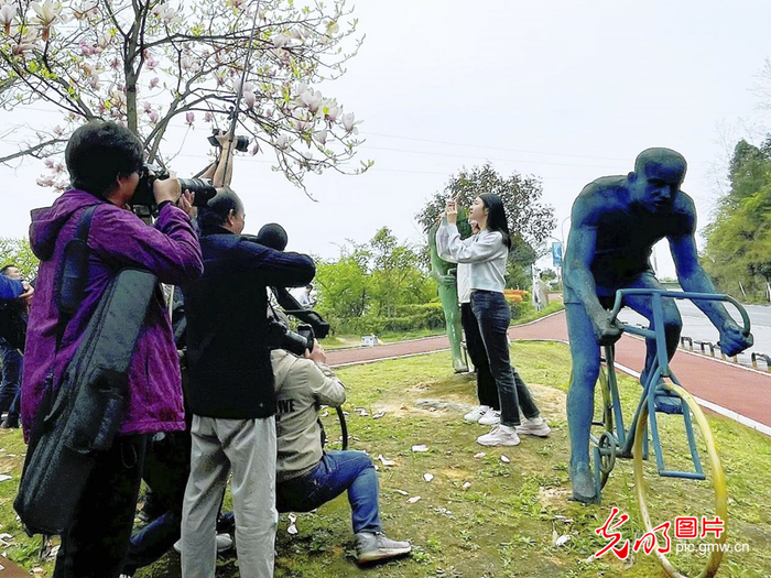 走进重庆“最美山城步道”——黑山八角健身步道,来自全国的摄影家们一路走、一路拍,时而沉醉于生机盎然的绿色景致,时而停下脚步,记录精彩瞬间。(兰舒摄/光明图片)