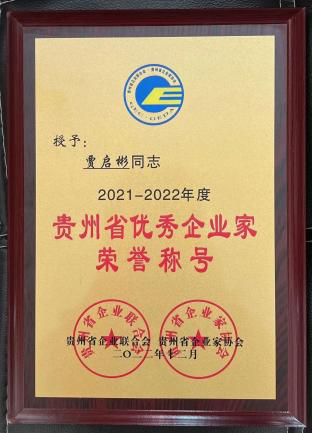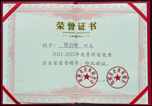 热烈祝贺西洋实业总经理贾启彬获评“贵州省优秀企业家”