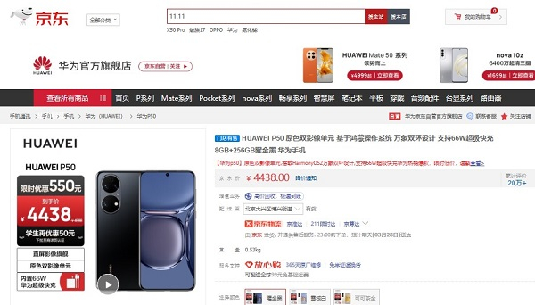 想要入手华为新机,推荐趁优惠选择华为P50。华为P50搭载6.5英寸屏幕,支持原色显示和疾速流畅体验,暗光条件下更护眼,追剧可以获得沉浸式体验。华为P50搭载原色双影像单元,超级主摄单元和超级变焦单元带来更好拍摄体验,全新计算光学和XD Fusion Pro图像引擎带来更多突破,精彩随手记录。华为P50还搭载原色前置影像系统,自拍色彩更还原,同时100°超广角能够纳入更多人物或风景。京东手机焕新季期间,华为P50 8GB+256GB版限时优惠550元,京东价4438元,学生还可再优惠50元。