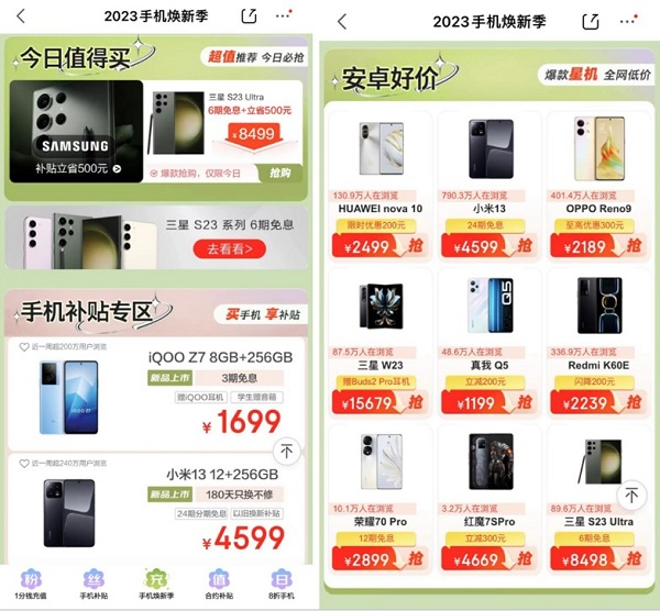京东手机焕新季期间,超多人气新机、爆款机型都有超值低价,3月28日更有爆款机型加赠1年无限碎屏保的超值福利,一年内不限次数前屏和后盖维修,有需要的小伙伴可在京东APP搜索“手机焕新季”,一键直达主页面,挑选心仪的机型吧。