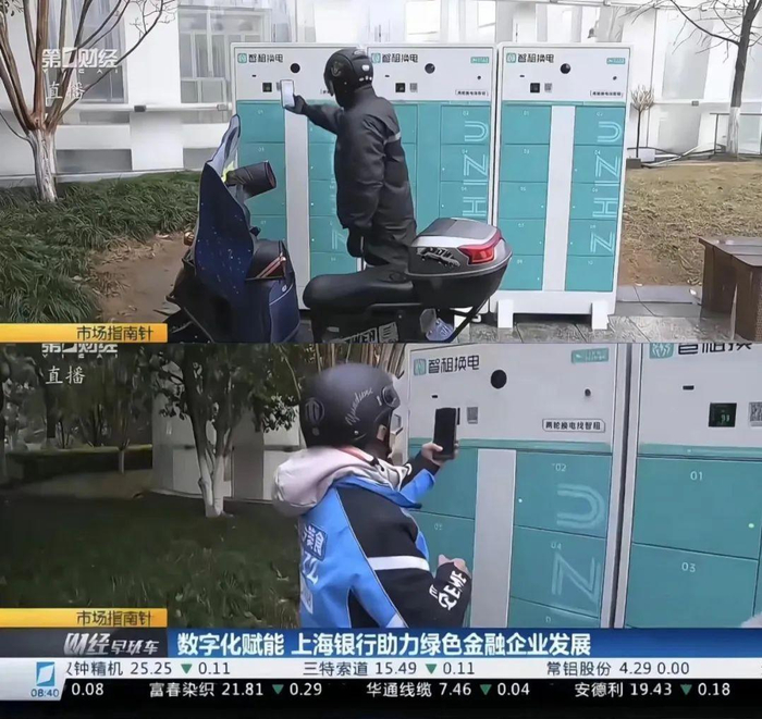记者唐玮婕亲身来到智租换电柜点前,并这样描述她眼前的场景:“只见他们个个‘熟门熟路’,停好电动自行车取出电池,立马奔向一个蓝色的换电柜,‘扫码,开柜、取电、换电’四个动作差不多用时10秒,完成后又赶紧骑着满电的车去跑下一单了。
