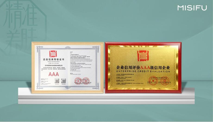 近日,苏州蜜思肤化妆品股份有限公司(以下简称“蜜思肤”)通过企业信用评定综合考察,获得“AAA级企业信用等级”认证,同时获颁《AAA企业信用等级证书》。这代表着蜜思肤在市场信用建设管理中的成果获得国家相关部门及权威机构的认可。