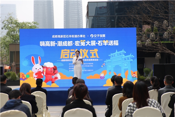 3月28日,成都高新区石羊街道“嗨高新·潮成都--宏兔大展·石羊送福”消费券发放活动启动仪式在交子大道举行,当天10点起面向成都市民发放520万元政府消费券,持续助力市民消费,拉动市场回暖。