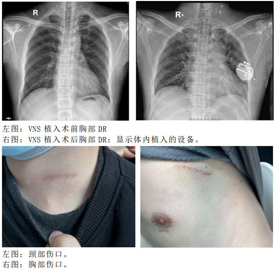 2022年2月,小张来到广东三九脑科医院,经癫痫中心仔细的术前讨论后认为患者为双侧致痫灶,无法进行切除性手术,只能通过姑息性手术控制患者发作,经过与患者及家属仔细沟通后,外八科陈俊喜主任团队为其成功实施了迷走神经刺激器植入术(VNS),一种被誉为“电子药物”的手术,术后当天即可下床活动,2后后开机。患者术后至今已随访一年余无发作,回归正常生活,目前在快递公司上班。