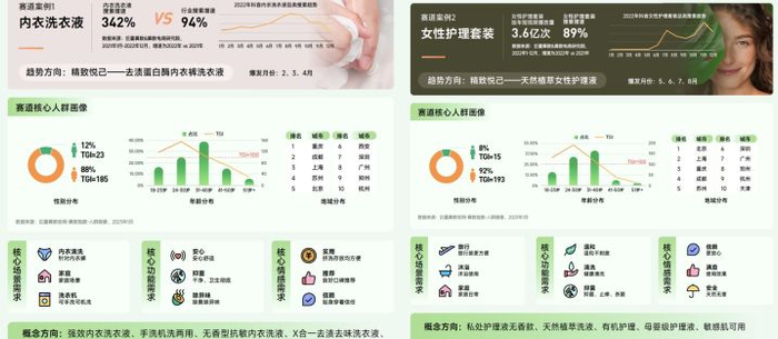 趋势雷达|赛道名片专刊基于巨量算数&算数电商研究院推出的趋势赛道研究IP,组合消费场景、功能&功效、情感诉求,推荐趋势赛道及预测方向,回答商家“哪些消费者,在何处场景下有何种产品需求”的问题;相关洞察结果可直达产品端,缩短 “源头创新”到“市场消费”的距离,最大程度降低创新损耗。