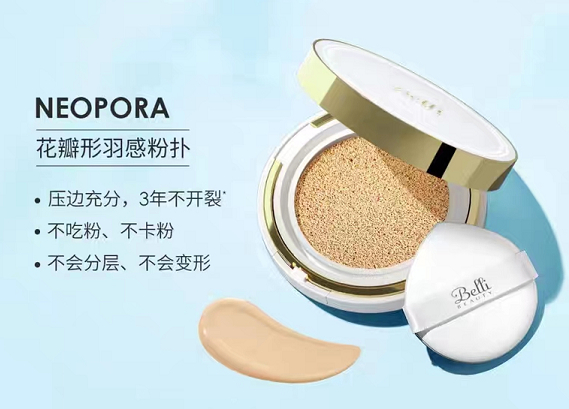 为追求用户体验,Belli璧丽小白伞气垫有配套粉扑,更方便随时补涂。粉扑采用的是NEOPORA材质,不吃粉、不卡粉,亲肤透气,体感舒适,不易变形,且花瓣的造型,照顾到眼角、鼻翼等方方面面,让妆容更加完整。对于0化妆基础的使用者,也能轻松上手,打造高定柔雾裸妆。