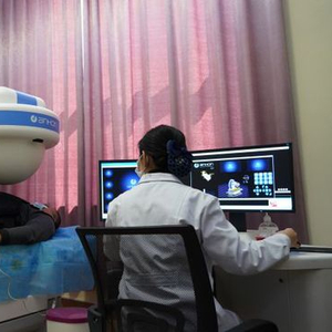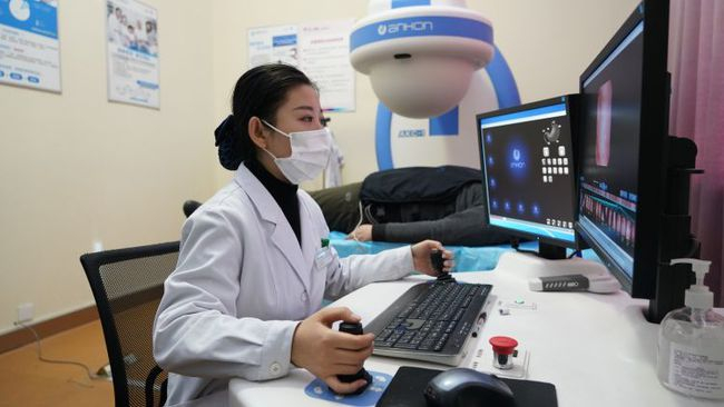 医务人员在操作仪器为患者进行检查