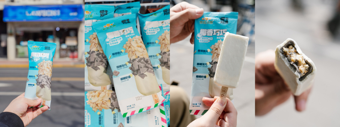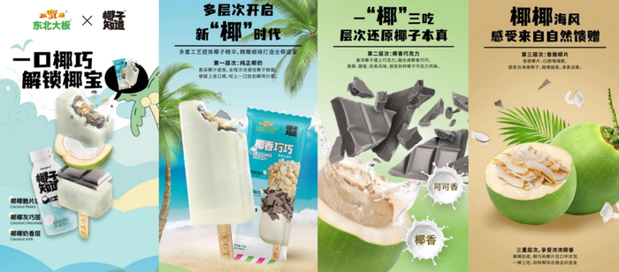 整款产品使用了纯正椰奶。椰奶、椰巧与椰片的三重组合:外层冷冻锁鲜实打实地保留了椰子的鲜甜,咬上一口犹如椰风抚面;中间夹层,“椰香巧巧”抢占C位,香浓椰子搭配巧克力,别具风味;内层饱含香脆椰片,清香淡雅,越嚼越香。