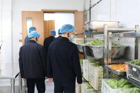 在学校膳食中心,领导和专家观看了学校食堂智能化设施设备、食品材料样品展示、制度建设、加工流程、库房管理、安全防护等方面的情况。大家在制度墙、台账展示区等区域驻足拍照,仔细询问,对学校食堂的规范化管理和软硬件水平,给予高度评价。
