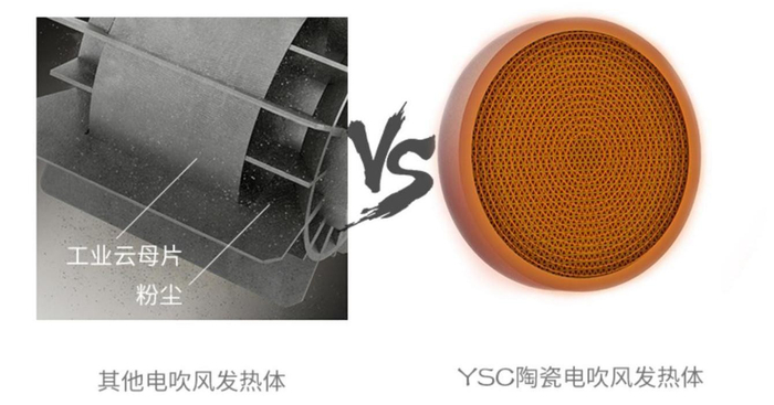 YSC陶瓷电吹风,其陶瓷发热体的电热能转换率可达90%以上,是传统发热丝的一倍左右。在同等功率输出情况下,输出功率优于传统发热丝,节能又环保。