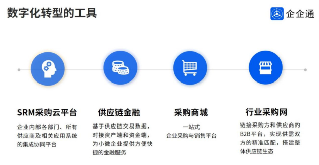 目前,我们比较常用的采购数字化转型工具一般是SRM采购云和商城云,企企通采购云,基于采购业务实现两个闭环管理,供应商全生命周期管理和采购全流程闭环管理,实现采购管理保供、降本及提效三大主要目标。企企通商城云,解决企业内部非生采购业务痛点,实现业务部门自动化采购,释放采购部门工作量,还能为企业节约平均15%+的采购成本。