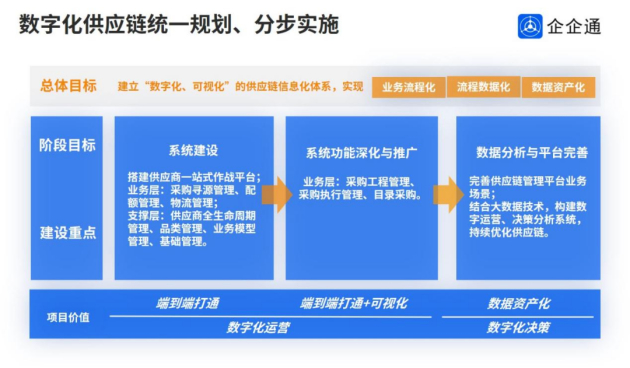 第三步数字资产化, 发挥企业的数据价值,通过多维度的采购数据帮助企业做一些决策分析和支撑,可以持续来优化我们的供应链。
