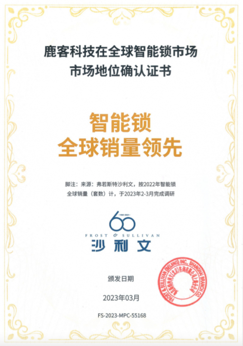 第三,鹿客之前推出的产品已经证明,静脉技术智能锁在行业里还是能打的。据国际权威调研机构弗若斯特沙利文权威认证,鹿客科技的静脉锁是全球销量第一,在整个智能锁界,鹿客科技的智能锁销量也是全球领先。