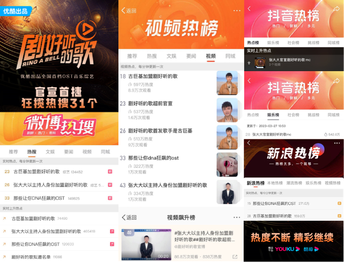《剧好听的歌》不仅要唱共鸣还要“剧”共情,节目模式的创新将为综艺业态和娱乐营销带来最强驱动,嘉宾的真实表达和对音乐的坚持与热爱会给予用户更多生活信心。该综艺官宣后持续引发热议,截至发稿累计全网热搜31个,相关话题累计阅读近2亿。