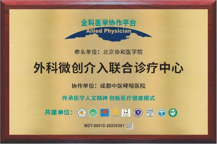 2023年02月28日北京协和医学院授牌我院(成都中医哮喘医院·成都中医肺科医院)外科微创介入联合诊疗中心。