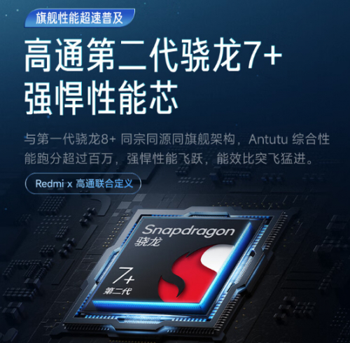 性能上,Redmi Note 12 Turbo首发搭载第二代骁龙7+,第二代骁龙7+与第一代骁龙8+同宗同源,性能强劲。散热上,Redmi首次采用超扩散导流VC,散热能力更强,性能保持稳定输出。Redmi Note 12 Turbo搭载Redmi自研调校技术——狂暴引擎,带来稳定帧率、持久流畅、场景智能省电、10X超分触控,电竞体验更佳。