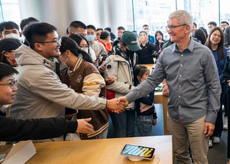 3月24日下午,一个陌生而又熟悉的身影,瞬间吸引了北京三里屯苹果店铺内所有人的注意。此人正是苹果公司现任CEO蒂姆·库克。北京三里屯店是苹果2008年在中国开的第一家零售店,这家店对于库克而言有特殊的意义。