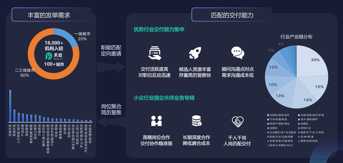 禾蛙作为科锐国际旗下的人力资源服务产业互联平台,通过禾蛙平台、禾蛙盒子、迅致等模块的协同合作,链接人力资源行业的优质交付力量,打造重点岗位的交付运营体系,快速完成供需匹配;立足于区域特色,链接区域城市招聘服务机构,满足企业的招聘需求,促进人才高质量就业,为区域发展赋能。