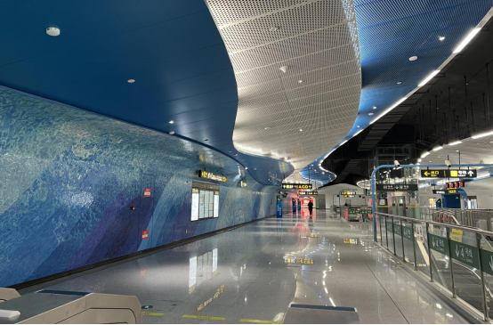 近日,青岛地铁四号线全线通车。昌乐路站、海泊河公园站、海泊桥站三个站台经过中建八局装饰公司的装饰装修后流光溢彩,全面助力青岛地铁经济再发展。