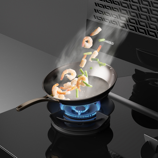 爆炒产生的油烟是所有中式厨房特别是开放式厨房的一生之敌,逃逸的油烟扑脸呛鼻尚且不说,室内家具软装也会惨遭荼毒。油烟遇上烟灶联动的悍高油烟机,只有束手就擒。油烟机联动灶具点火,强劲火源先动,飓风侧吸随后而至,封锁炒菜油烟产生的每时每刻,油烟逃逸0可能;7字形纤薄结构设计得以从更好角度观察菜品状态,且炒菜不碰头,更沉浸式的酣畅烹饪体验,厨力显著提升;油烟机最上方设有圆弧置物台,洗切好的食材和起锅装盘用的餐具放在上方,不仅解放台面,还能减少频繁走动对体力的消耗,无缝衔接下一道菜的下锅翻炒。