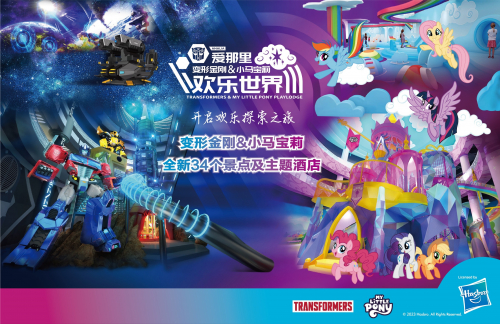 作为两大国际IP进军室内实景娱乐结合主题酒店新业态的中国首站,欢乐世界拥有令人惊艳的三层超大空间,总面积近 20,000 平方米,以两大IP故事线贯穿起34个主题场景空间、21个游乐互动项目和10大王牌体验,将故事、角色、科技、艺术巧妙融会贯通,为亲子家庭、IP爱好者以及追求酷炫潮流的年轻群体带来国际前沿的创意性娱乐和沉浸式体验。未来,变形金刚与小马宝莉主题酒店客房将与欢乐世界的34个主题景点同期开放。