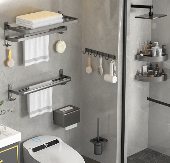 百字卫生间置物架枪灰7件套
