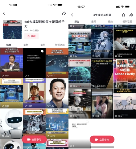 面对“AI大模型“、”生成式AI“这样的术语,单纯释放情怀释放显然不够。于是,勾勾互娱又展示了另一重策略——知识科普类AI营销,让人们在了解的基础上产生认知。在抖音平台,勾勾互娱上线了#AI大模型训练每次花费超千万#、#AI已成互联网最大风口#等话题,还借着电视剧《狂飙》的爆火上线了#生成式AI狂飙#等话题持续为文心一言造热度,在内容上,勾勾互娱把AI这件看似离老百姓生活很远的事情和外卖小哥、农业等等生活话题结合在了一起,在人们熟知的生活桥段中进行科普,为文心一言创造了更多被传播的可能。