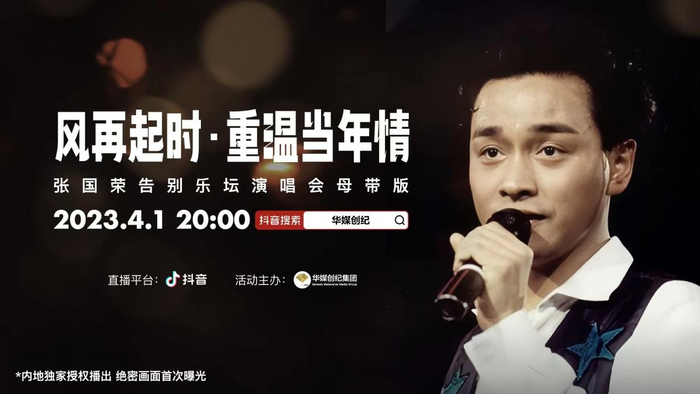 2023年4月1日,由香港华媒创纪集团携手抖音平台,与抖音团队联合呈现的“张国荣《告别乐坛演唱会》母带版”将首度抖音直播。