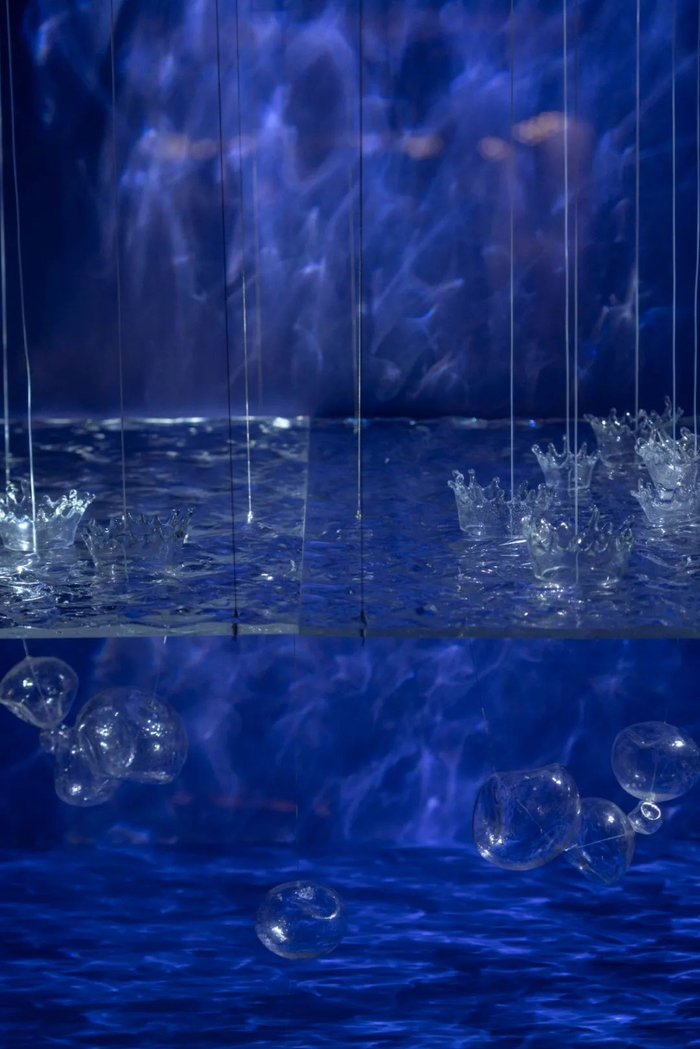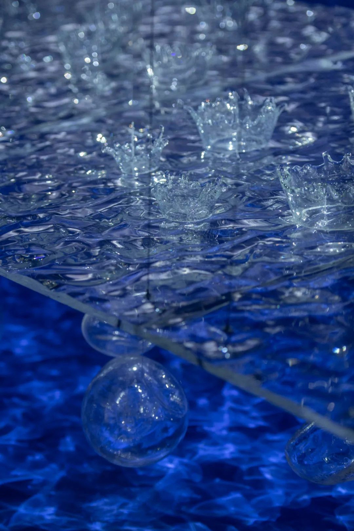 玻璃水花、水纹玻璃、玻璃水泡,将玻璃的特性完美发挥到极致。无论是吹、铸造还是切割,皆有无限艺术可能。玻璃,原本被称为“火与沙的艺术”,在成都SKP-S与水相溶,怎能不为之沸腾。