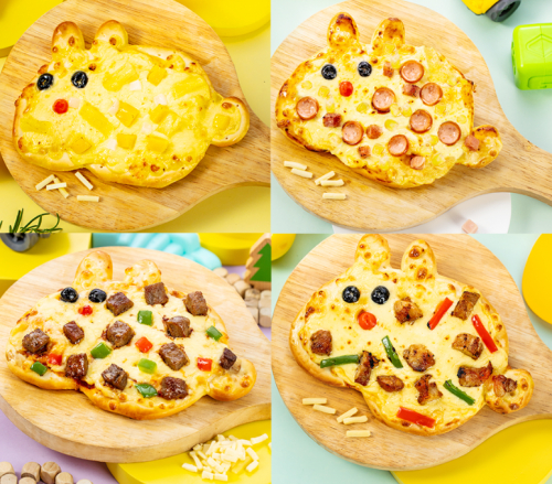 卡通小兔系列披萨是闪味品牌首次在披萨领域融合民族传统文化的结晶,其从研发到生产,经历了多次的实验研究尝试以及模具和生产线的打磨,终于在预烤半成品披萨领域实现了兔子形状的披萨批量生产。