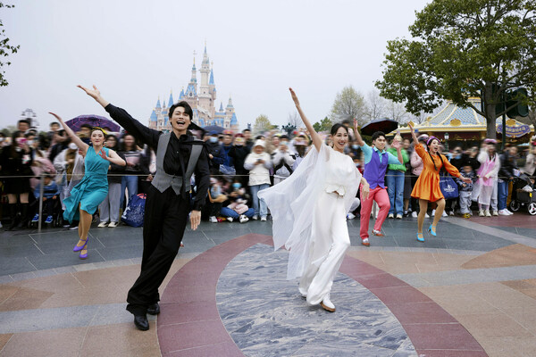 上海歌舞团荣典·首席演员朱洁静和王佳俊惊喜现身上海迪士尼乐园,为游客带去更多春日神奇