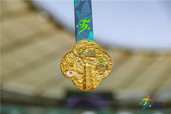 马拉松赛事的奖牌是参赛选手的荣誉勋章,因为它集结了跑者为完赛而付出的努力与坚持,同时又是一张城市名片,因为看见它就能看见这座城市最美的风景。本届苏马的奖牌创意来源于古代苏州园林的经典造型海棠花窗,纹样元素是设计师以“大运河”为描绘对象创作的别具一格的图腾,融合了国风韵味与现代风尚,展现蓄力勃发之势。奖牌正面海棠花窗洞中透过时空穿越看到现代建筑东方之门,背面则是苏州最具历史文化特色的地标建筑虎丘塔,通过跨时空对话开启苏州马拉松之旅的大门。赛事奖牌特别增加铭牌设计,用于奖牌刻字,让每一名顺利完赛的选手拥有专属的马拉松完赛奖牌,为苏马之行留下美好而又难忘的记忆。
