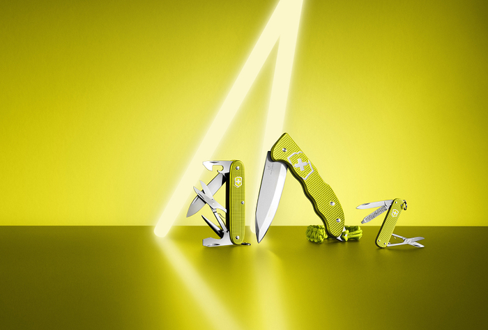 自 2015 年起,铝面限量版瑞士军刀每年都会推出一款全新的限量版颜色。2023 年的第九版选用电黄色。这个超凡的颜色象征着纯粹的能量、瞬间吸引百分百的注意力,充满了乐观的力量。该系列包含典范 SD、先锋 X 和狩猎大师三款刀型,是礼赠佳品。对品牌的忠实粉丝和想要寻找特别款或与众不同的产品的收藏家而言,这也是理想之选。每件产品的背面均印有年份,并附以证书和优雅礼盒。