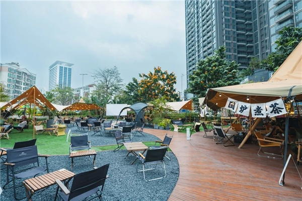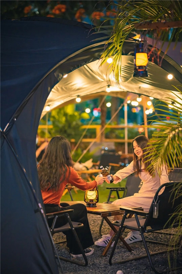 时尚潮吧区则活力四射,动感十足的DJ打碟,点燃生活热情,品中式茶酒、精致简餐、酷炫调酒,将室内潮生活搬到户外露营地。亲子乐园是孩童的新天地,童趣盎然的环球屋内,设有写生区、巨型叠叠乐、故事魔法师等体验活动,让孩子们进入沉浸式的童趣露营体验。