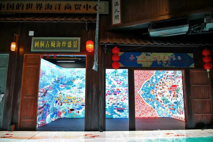 泉州城市文化展区不仅有传承已久的福船模型、藤铁工艺、惠女服饰、砖雕技艺等,也有鲤城城市IP“海丝家族”周边、“簪花兔”等新晋网红,更有唐卡百米长卷再现古泉州“市井十洲人”盛景,让观众沉浸式体验泉州的“前世今生”。