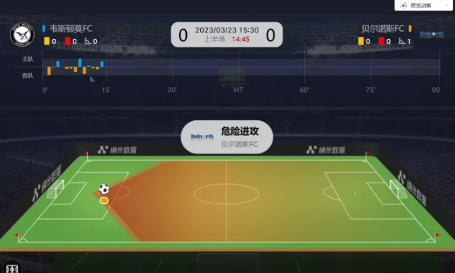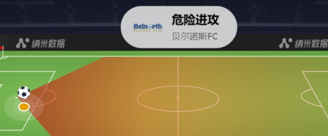 在一些特殊、关键的比赛事件如危险进攻发生时,我们的动画效果的颜色将会变为橘黄色,和普通的比赛事件来进行一个区分。