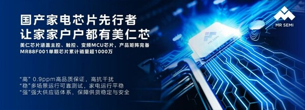 MR88F001系列主控MCU于2020年发布,是美仁芯片的代表性产品之一,凭借强大的抗电磁干扰能力进一步提升了家电运行的稳定性,在高品质芯片的金指标"市场失效率"方面,其具备行业领先的0.9ppm(百万分之零点九)失效率,遥遥领先于行业水平,体现出美仁芯片在广泛、多样的应用场景下稳定的产品性能。