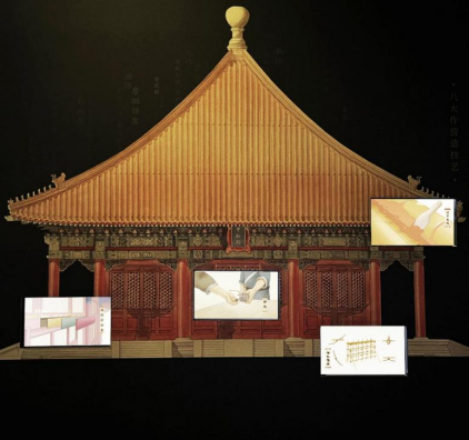 总设计王泊乔与中数艺DAC团队决定对文物及其历史情境进行高精度还原,用6个多媒体展项活化文物,并加强对文物的细节展示,与观众的记忆建立连接。通过大都有自、八大作营造技艺、祭祀乐舞、徐显卿宦迹图、载湉(光绪帝)大婚典礼全图册和历史的见证讲述中轴线的历史源流、初现、发展和礼乐文化等庞杂的信息流。