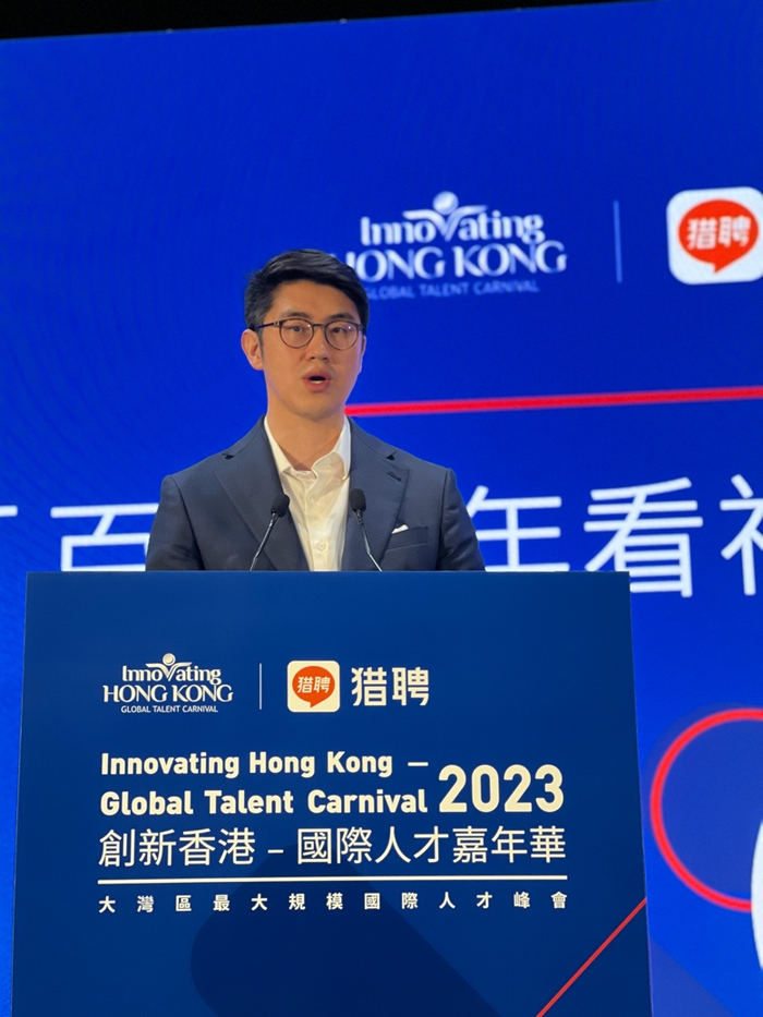 活动联合主办机构,同道猎聘集团董事会主席兼首席执行官戴科彬先生在发言中表示,很荣幸猎聘以主办方的方式,深度参与创新香港的举办,这一届终于不再受限于疫情,能够邀请众多内地大湾区的企业前来参与,为香港、大湾区的人才争夺作出贡献。