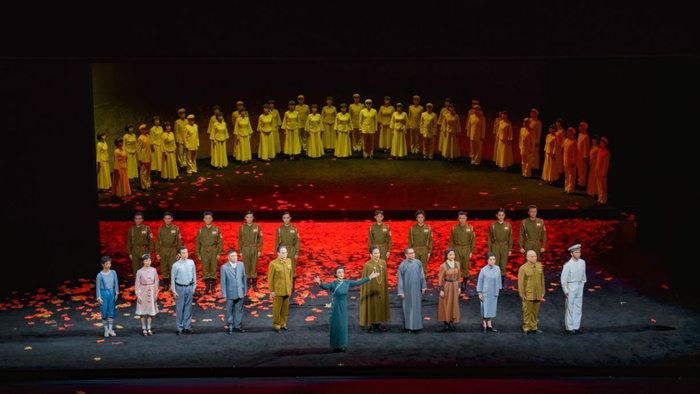 “层林染,万山红遍,枫叶如花”,在这万物复苏的初春时节,由浙江省文化和旅游厅指导、浙江小百花越剧院出品的越剧《枫叶如花》于4月2、3日两晚,亮相中央歌剧院剧场,为北京观众献上了视觉和听觉盛宴。随着尾声的主题曲响起,英雄丰碑矗立舞台,观众掌声和泪水如潮喷薄……