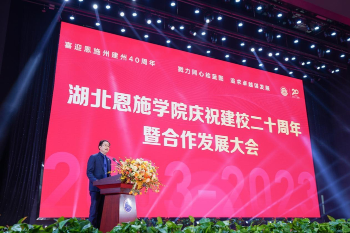 湖北民族大学校长顿祖义在讲话中指出,过往皆序章,新的赶考,任重道远。2023年是全面贯彻党的二十大精神的开局之年,是全面落实省第十二次党代会精神的关键之年,也是恩施州建州40周年。作为扎根恩施的高等学府,湖北民族大学与湖北恩施学院共同肩负着育人兴邦的光荣使命,承载着服务发展的政治责任,要不忘初心、携手共进,担当善为、不辱使命,对标对表科教兴国的战略安排,用心用情办好人民满意的高等教育,为湖北省建设先行区、恩施州创建“两山”实践创新示范区作出新的更大贡献。