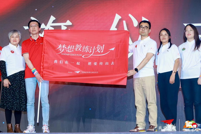 上海真爱梦想公益发展中心理事长周志毅,为坚持十一年传递梦想的志愿者刘毅授旗,感谢十五年来所有志愿者为教育公益事业的爱心付出,鼓舞大家在真爱梦想“发展素养教育,促进教育均衡,以教育推动社会进步”的使命下继续前行。