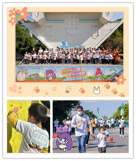 本次活动以“满纷一公里,成长一大步”为主题,设计了一条全程一公里的满纷一家主题路线,沿路随处可见满纷一家亲自跑参与者可爱的身影。一公里的跑到上,随处可见身着满纷一家为大家贴心定制的亲子运动装的一家大小,萌酷的跑酷服、彰显性格的号码牌、别具一格的奖牌等;各家庭选手你追我赶,小参赛者们在整体氛围带动下更是抛掉羞涩和害怕,勇敢地和父母亲一起迈出坚实的一大步!