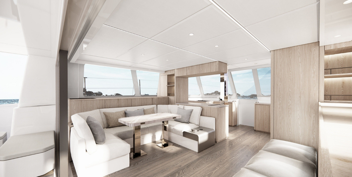 在内饰装修上,珐伊42C除了有标准配置,还可提供开放式版本,既针对内饰装修有更高要求的船东,可以将内饰装修的权限开放给船东或者室内设计师。珐伊42C双体船将成为船东们在海上真正的家。